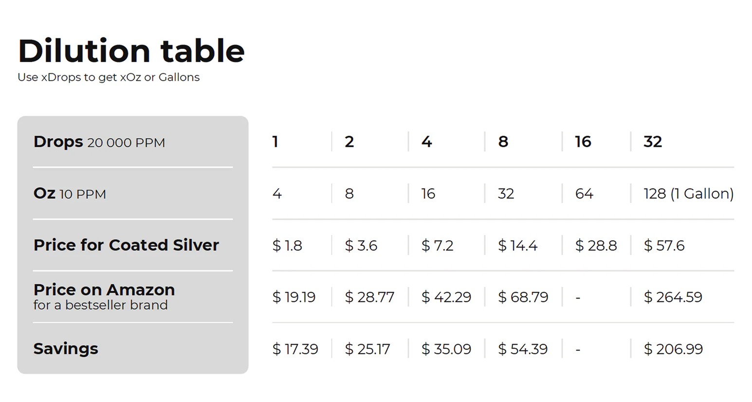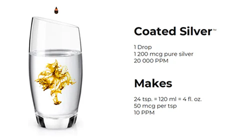 Super concentration (at least 83 times more concentrated than colloidal silver). Easy, easy to dilute and transport. Coated silver presents a vastly better value for the quantity of silver received.