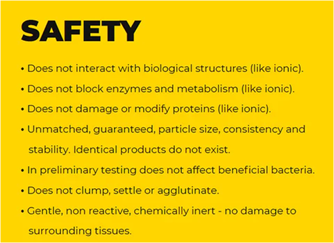 Mainstream scientific literature consider coated silver (whether coated with non-organic or organic materials) to be orders of magnitude safer than colloidal silver. Coated silver does not clump or agglomerate. Friendly to the microbiome.