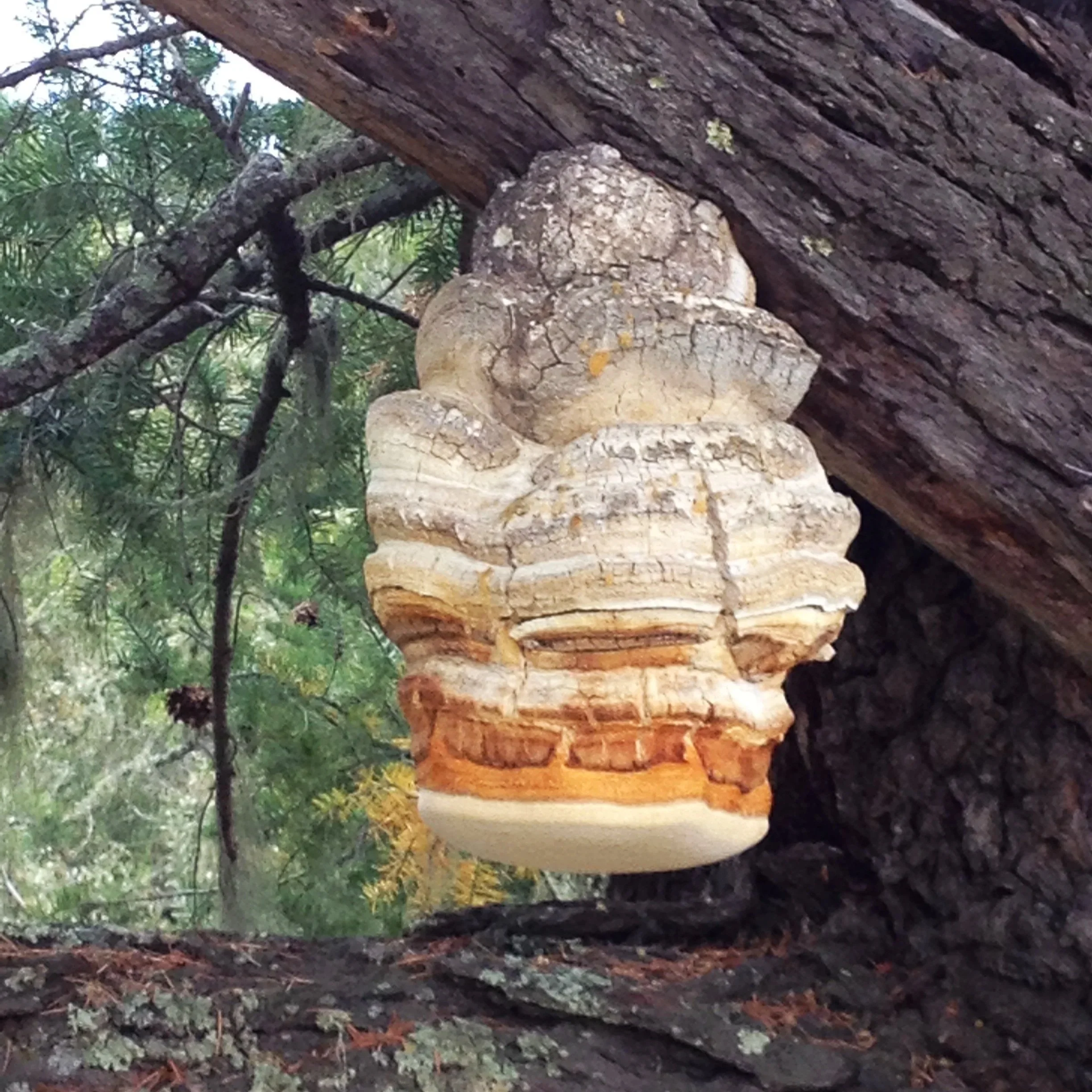 A common conifer conk found primarily in the forests of Western North America. A tough strengthening mushroom that supports the others. Cancer fighter.